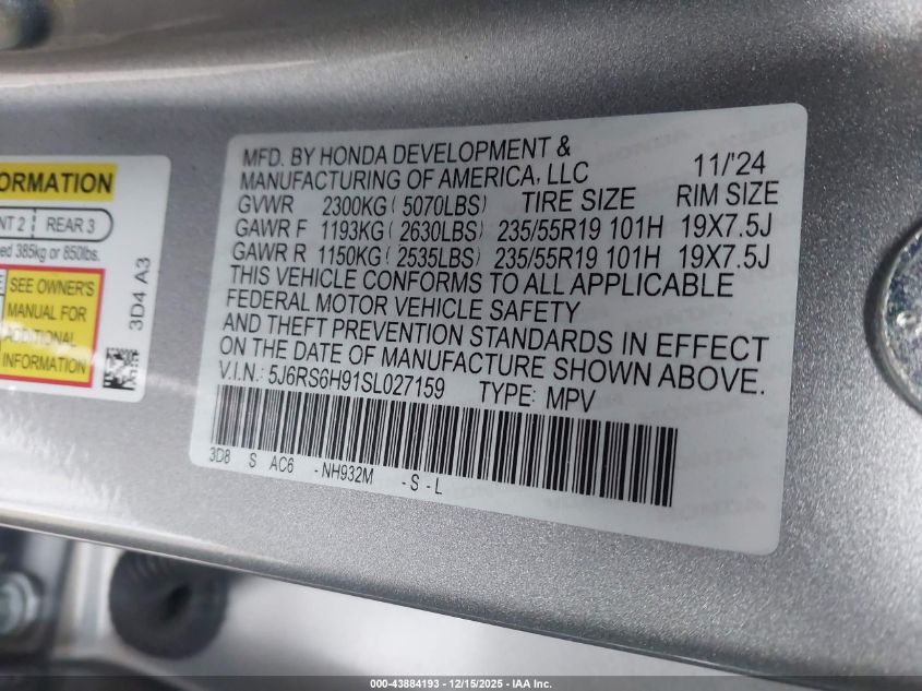 2025 HONDA CR-V HYBRID 2025 року Гибрид, 2.0, Полный привод, vin - 5J6RS6H91SL027159 из США