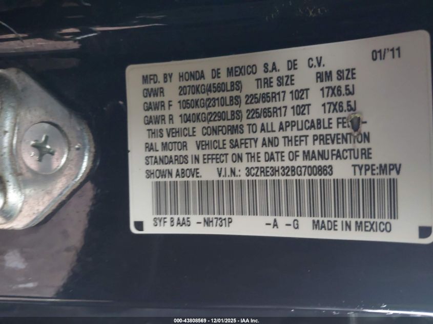 2011 HONDA CR-V 2011 року Бензин, 2.4, Передний привод, vin - 3CZRE3H32BG700863 из США