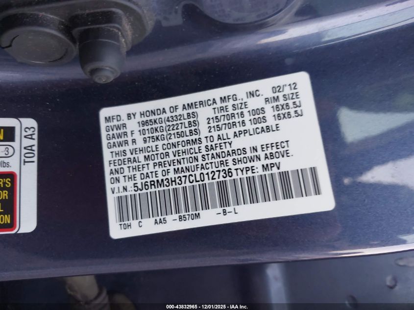 2012 HONDA CR-V 2012 року Бензин, 2.4, Передний привод, vin - 5J6RM3H37CL012736 из США