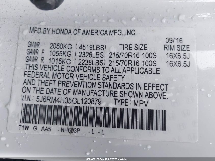 2016 HONDA CR-V 2016 року Бензин, 2.4, Полный привод, vin - 5J6RM4H35GL120879 из США