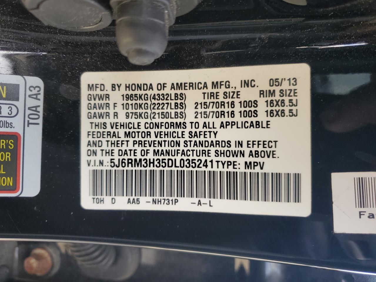 Цвет ЧерныйЦилиндры 4VIN 5J6RM3H35DL035241Состояние Заводится и едет (проверено)Повреждения Передняя или задняя AutoRIA