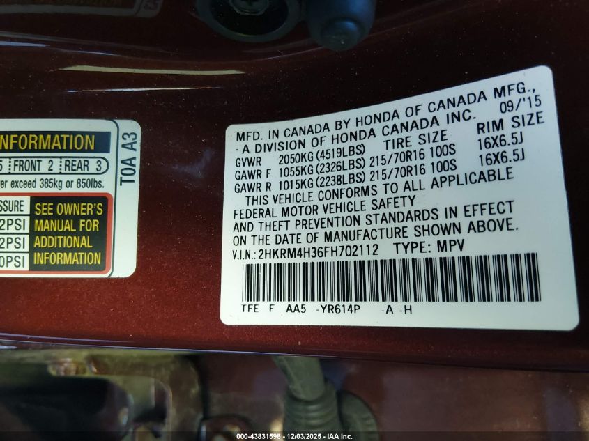 2015 HONDA CR-V 2015 року Бензин, 2.4, Полный привод, vin - 2HKRM4H36FH702112 из США