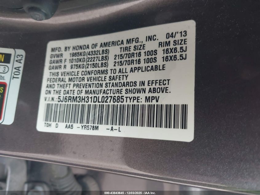 Цвет КоричневийЦилиндры 4Привод Передний приводVIN 5J6RM3H31DL027685Состояние СтационарноПовреждения Передняя или задняя AutoRIA