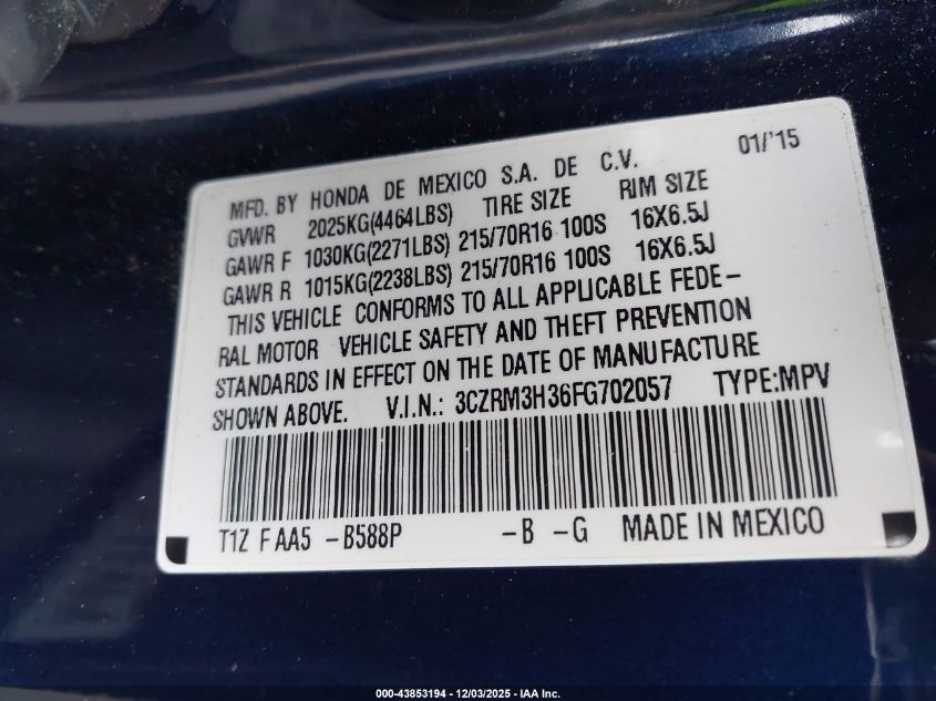 2015 HONDA CR-V 2015 року Бензин, 2.4, Передний привод, vin - 3CZRM3H36FG702057 из США