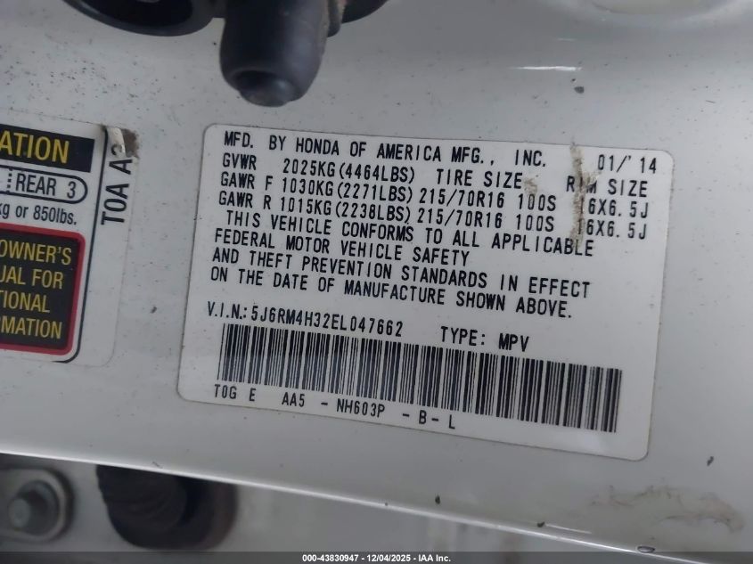 Цвет БелыйЦилиндры 4Привод Полный приводVIN 5J6RM4H32EL047662Состояние Заводится и едет (проверено)Повреждения Передняя правая AutoRIA