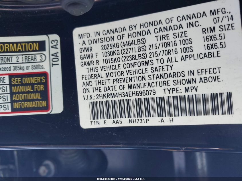 2014 HONDA CR-V 2014 року Бензин, 2.4, Полный привод, vin - 2HKRM4H34EH696079 из США