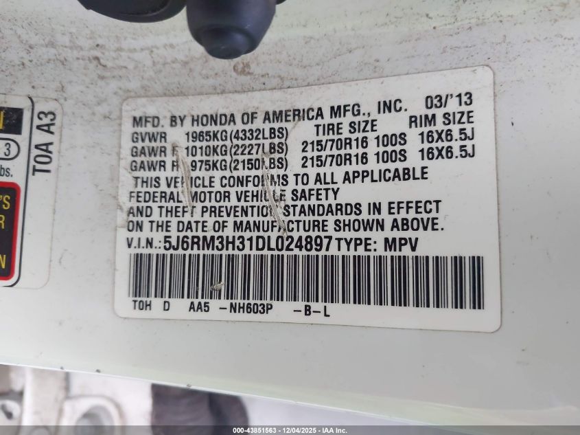 2013 HONDA CR-V 2013 року Бензин, 2.4, Передний привод, vin - 5J6RM3H31DL024897 из США