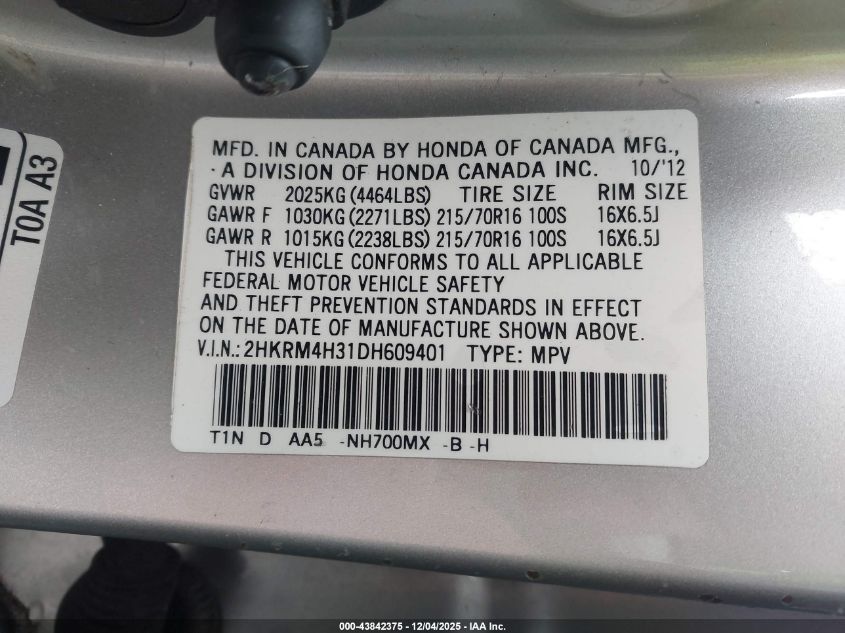 2013 HONDA CR-V 2013 року Бензин, 2.4, Полный привод, vin - 2HKRM4H31DH609401 из США
