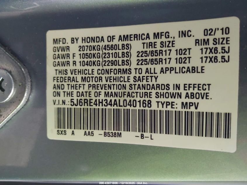 2010 HONDA CR-V 2010 року Бензин, 2.4, Полный привод, vin - 5J6RE4H34AL040168 из США