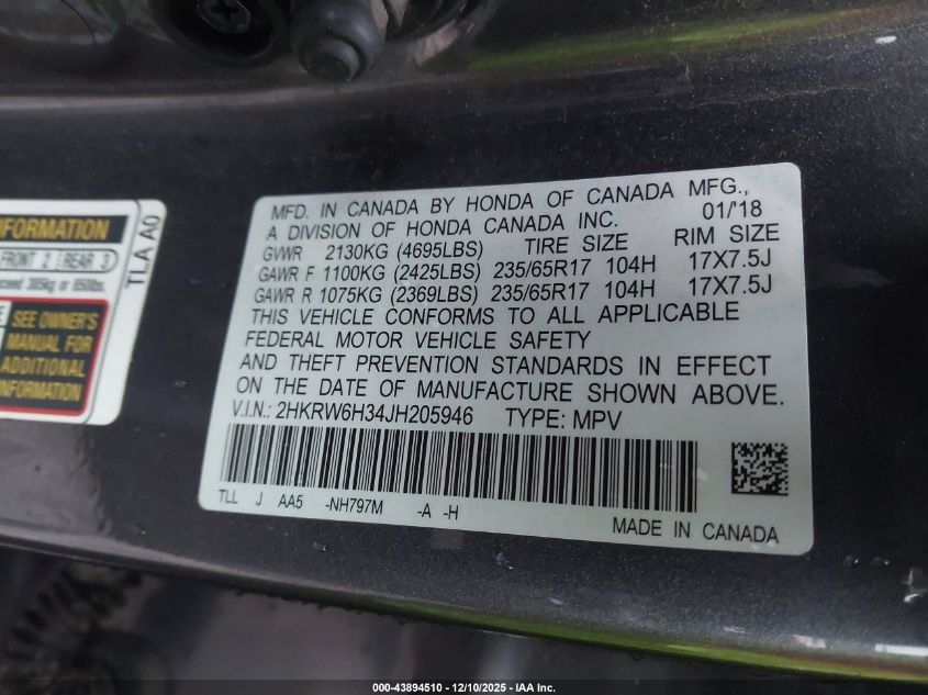 Цвет СерыйЦилиндры 4Привод Полный приводVIN 2HKRW6H34JH205946Состояние Заводится и едет (проверено)Повреждения Передняя или задняя AutoRIA