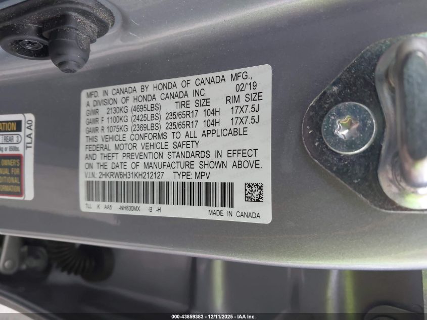 2019 HONDA CR-V 2019 року Бензин, 2.4, Полный привод, vin - 2HKRW6H31KH212127 из США