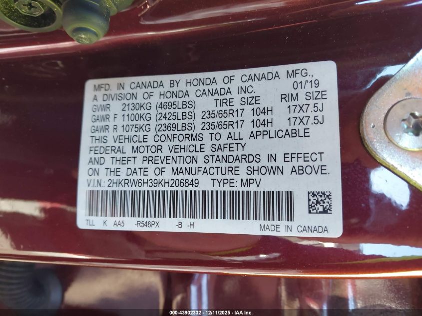 2019 HONDA CR-V 2019 року Бензин, 2.4, Полный привод, vin - 2HKRW6H39KH206849 из США