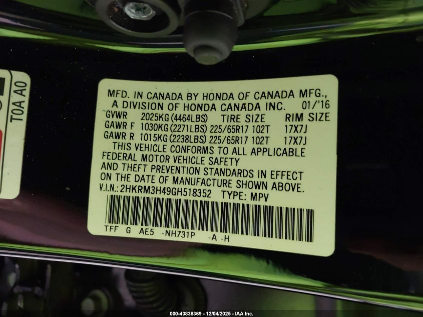 2016 HONDA CR-V 2016 року Бензин, 2.4, Передний привод, vin - 2HKRM3H49GH518352 из США
