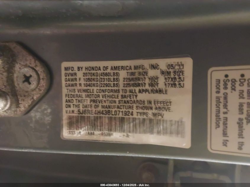 Цвет СинийЦилиндры 4Привод Полный приводVIN 5J6RE4H43BL071924Состояние Заводится и едет (проверено)Повреждения Передняя или задняя AutoRIA