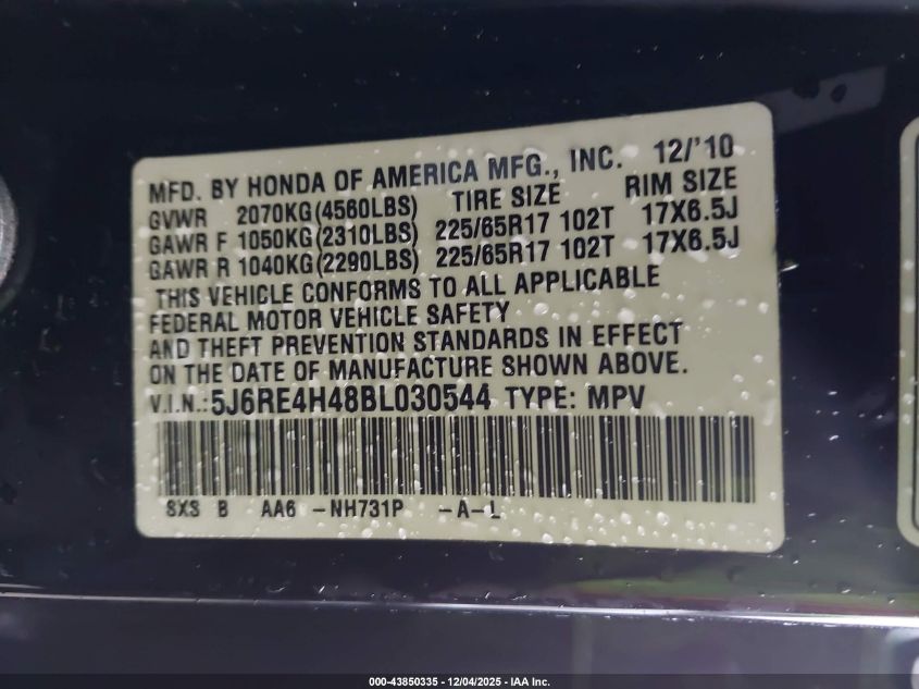 2011 HONDA CR-V 2011 року Бензин, 2.4, Полный привод, vin - 5J6RE4H48BL030544 из США