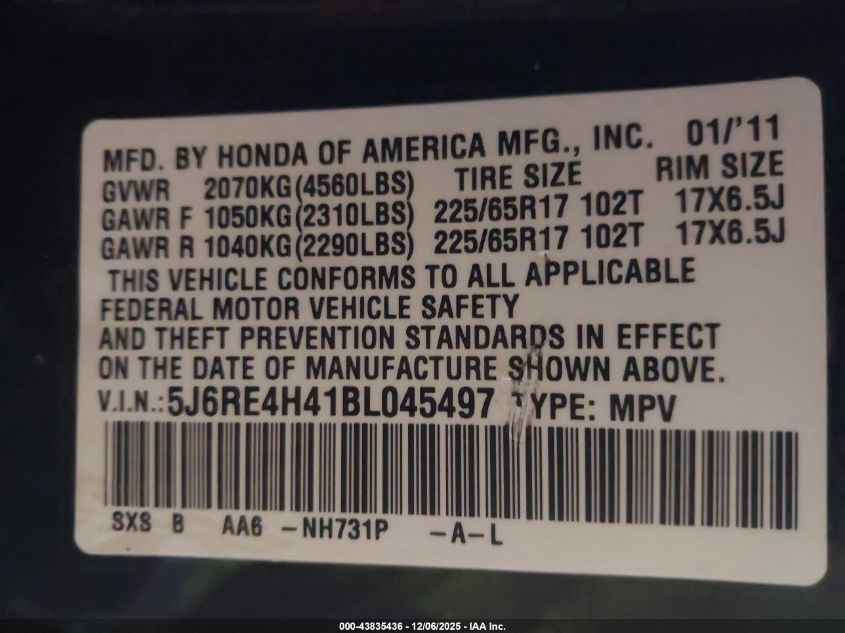 2011 HONDA CR-V 2011 року Бензин, 2.4, Полный привод, vin - 5J6RE4H41BL045497 из США