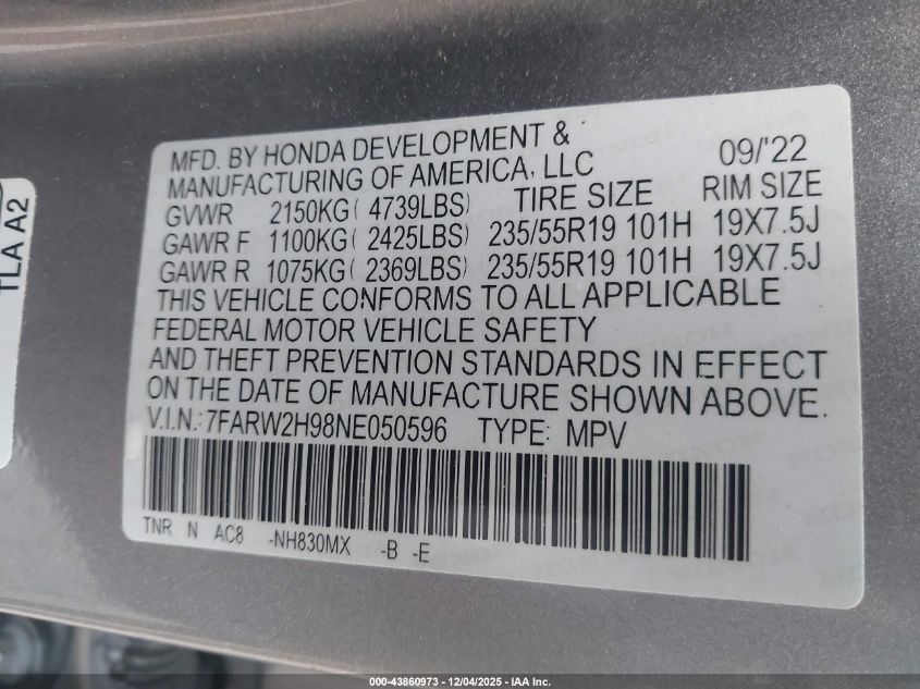 2022 HONDA CR-V 2022 року Бензин, 1.5, Полный привод, vin - 7FARW2H98NE050596 из США