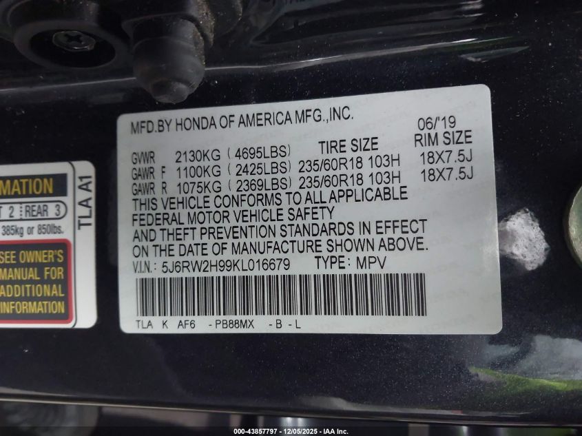 2019 HONDA CR-V 2019 року Бензин, 1.5, Полный привод, vin - 5J6RW2H99KL016679 из США