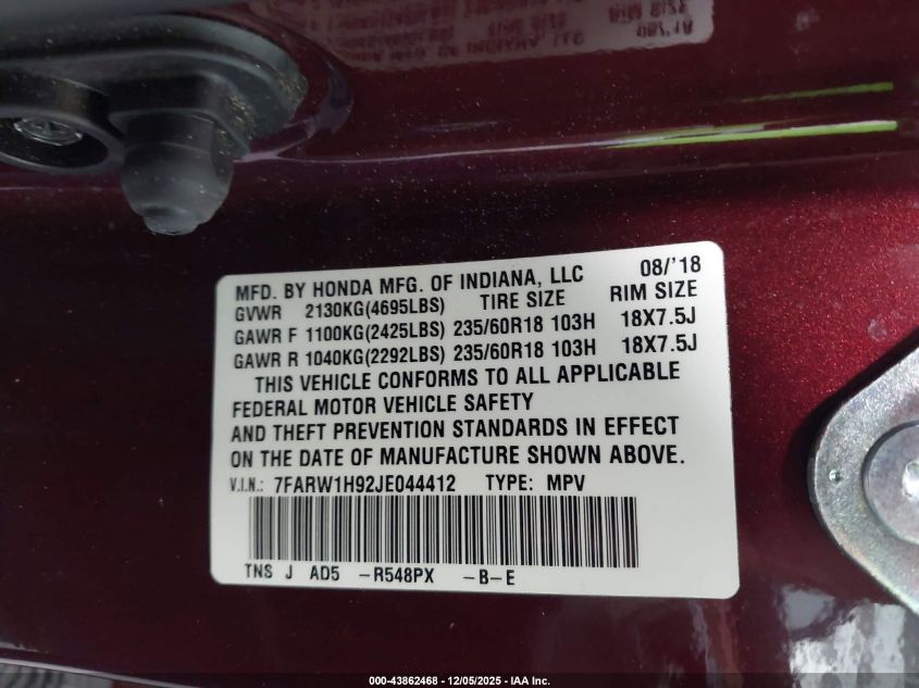 2018 HONDA CR-V 2018 року Бензин, 1.5, Передний привод, vin - 7FARW1H92JE044412 из США
