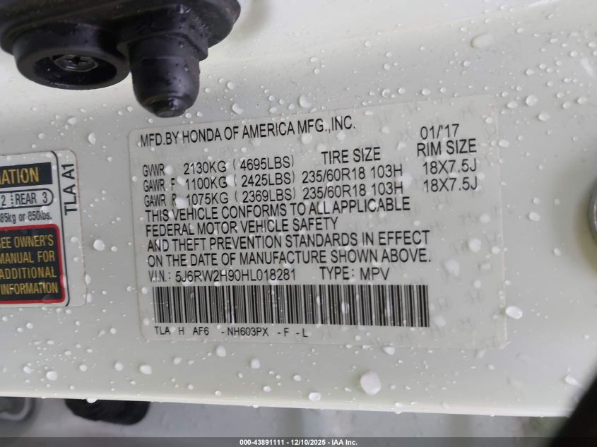 2017 HONDA CR-V 2017 року Бензин, 1.5, Полный привод, vin - 5J6RW2H90HL018281 из США