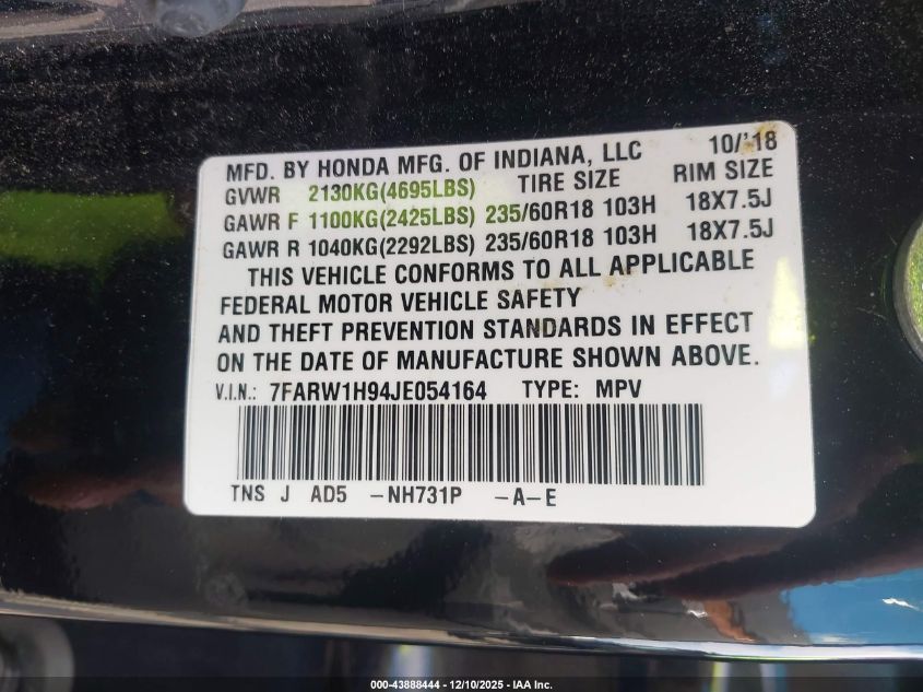 2018 HONDA CR-V 2018 року Бензин, 1.5, Передний привод, vin - 7FARW1H94JE054164 из США