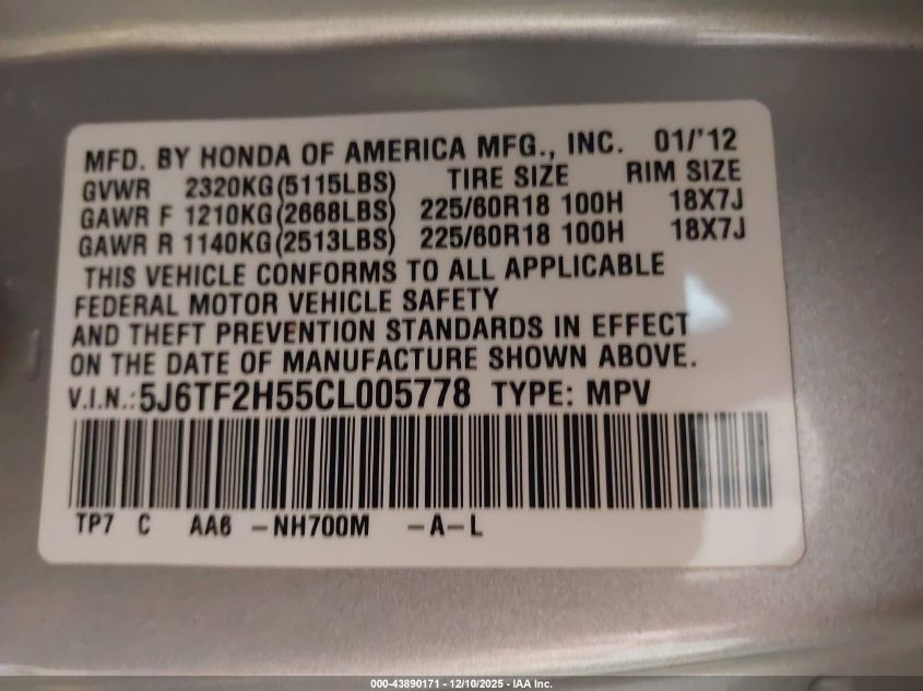 Цвет СерыйЦилиндры 6Привод Полный приводVIN 5J6TF2H55CL005778Состояние Заводится и едет (проверено)Повреждения По бокам AutoRIA