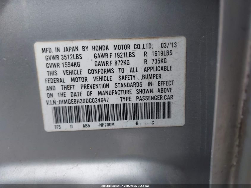2013 HONDA FIT 2013 року Бензин, 1.5, Передний привод, vin - JHMGE8H39DC034647 из США
