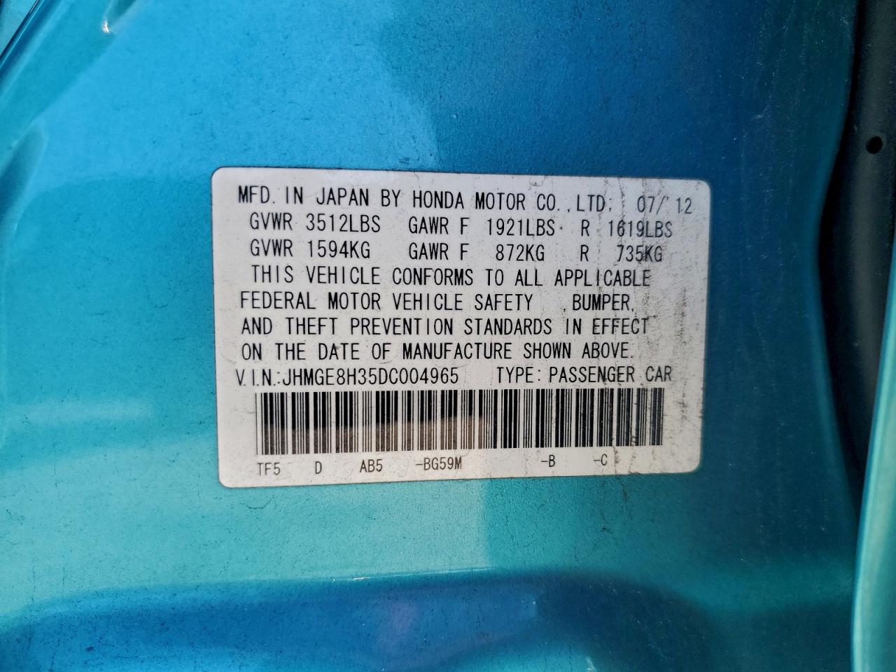 Цвет БирюзовийЦилиндры 4VIN JHMGE8H35DC004965Состояние Заводится и едет (проверено)Повреждения Задняя AutoRIA