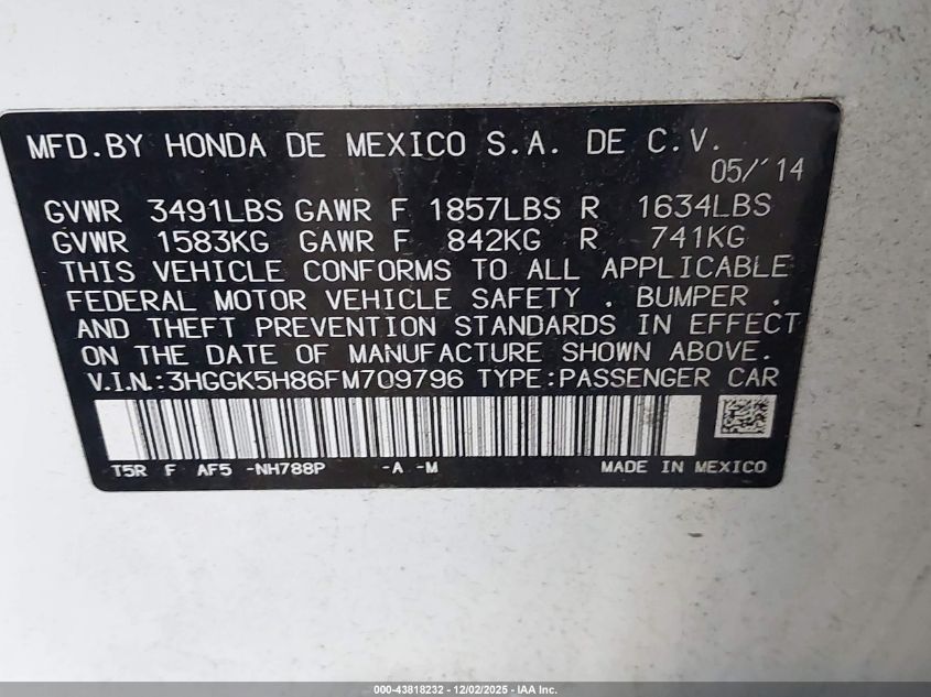 Цвет БелыйЦилиндры 4Привод Передний приводVIN 3HGGK5H86FM709796Состояние Заводится и едет (проверено)Повреждения Передняя или задняя AutoRIA