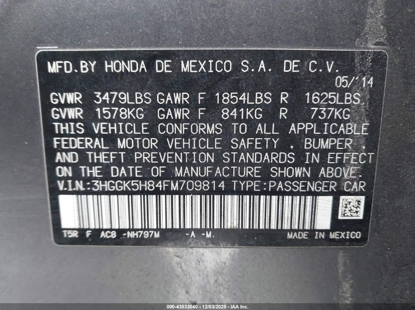 Цвет СерыйЦилиндры 4Привод Передний приводVIN 3HGGK5H84FM709814Состояние ЗаводитсяПовреждения Левая сторона AutoRIA