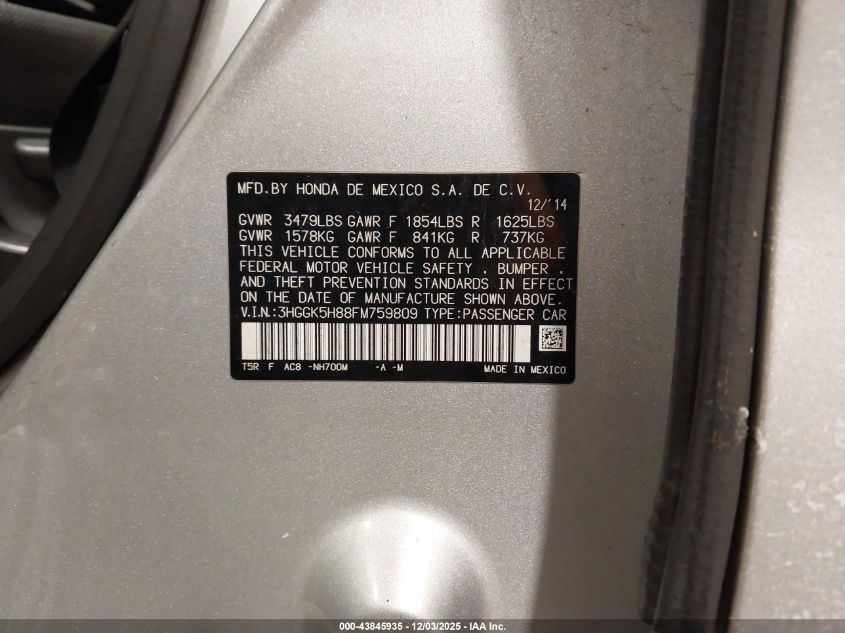 2015 HONDA FIT LX