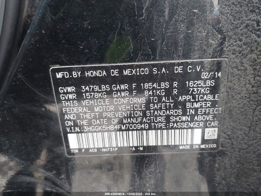 2015 HONDA FIT 2015 року Бензин, 1.5, Передний привод, vin - 3HGGK5H84FM700949 из США