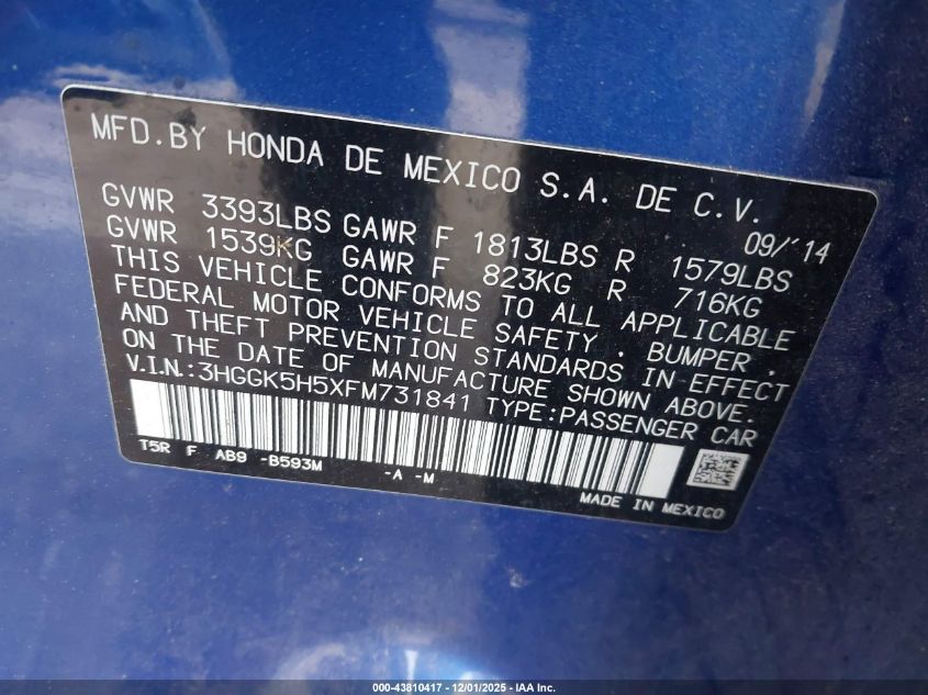 2015 HONDA FIT 2015 року Бензин, 1.5, Передний привод, vin - 3HGGK5H5XFM731841 из США