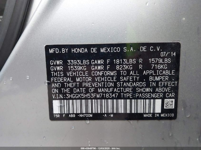 2015 HONDA FIT 2015 року Бензин, 1.5, Передний привод, vin - 3HGGK5H53FM718347 из США