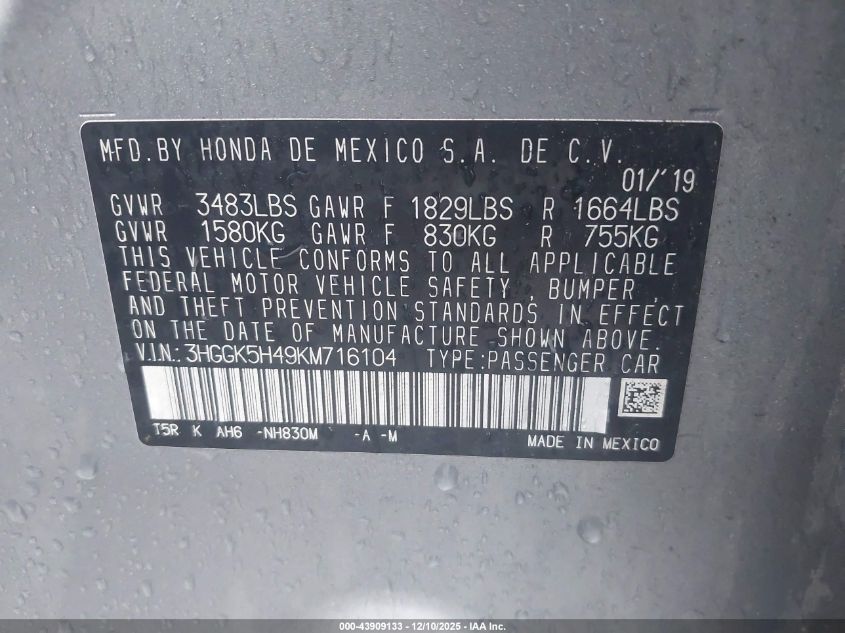 2019 HONDA FIT 2019 року Бензин, 1.5, Передний привод, vin - 3HGGK5H49KM716104 из США