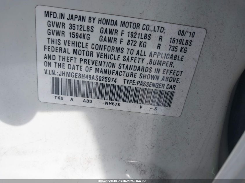 Цвет БелыйЦилиндры 4Привод Передний приводVIN JHMGE8H49AS025974Состояние Заводится и едет (проверено)Повреждения Передняя или задняя AutoRIA