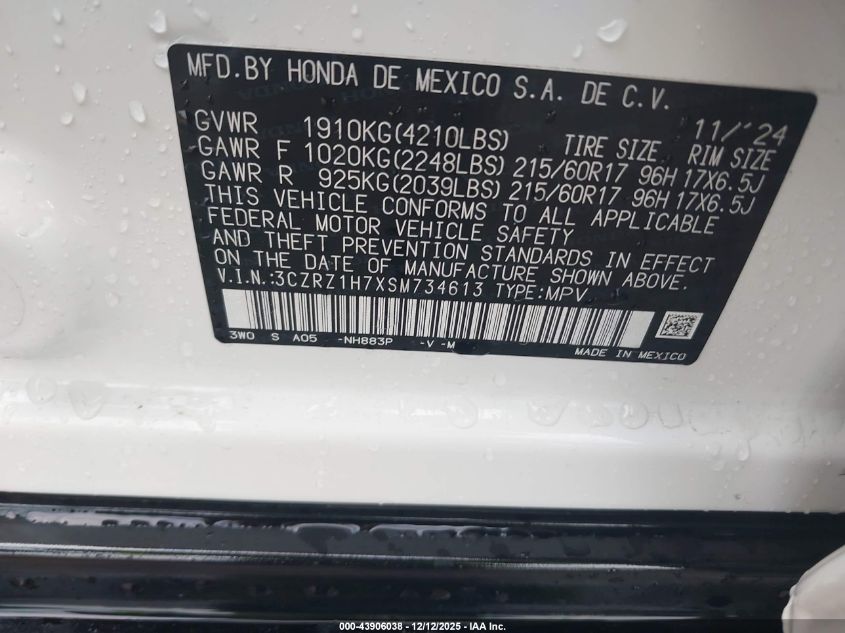 2025 HONDA HR-V 2025 року Бензин, 2.0, Передний привод, vin - 3CZRZ1H7XSM734613 из США