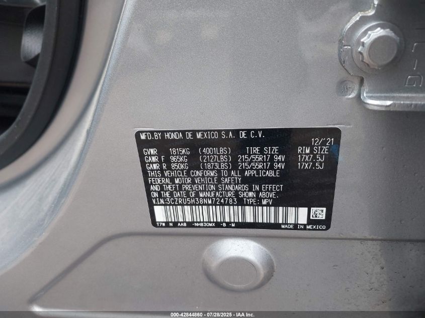 2022 HONDA HR-V 2022 року Бензин, 1.8, Передний привод, vin - 3CZRU5H38NM724783 из США