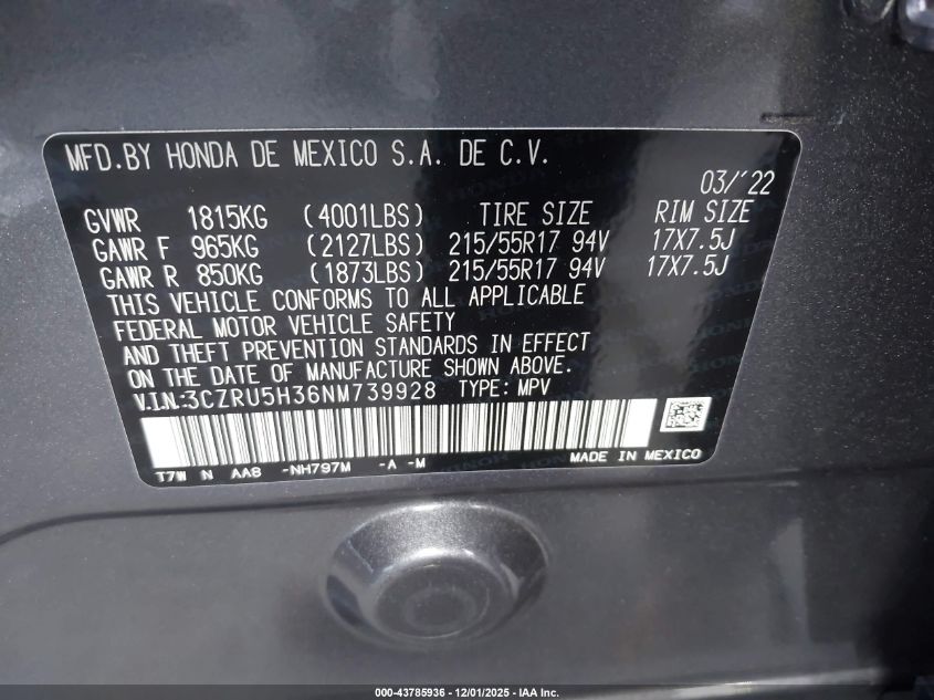 2022 HONDA HR-V 2022 року Бензин, 1.8, Передний привод, vin - 3CZRU5H36NM739928 из США