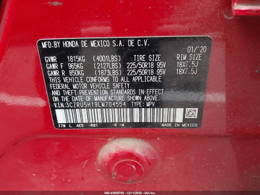 2020 HONDA HR-V 2020 року Бензин, 1.8, Передний привод, vin - 3CZRU5H19LM704554 из США
