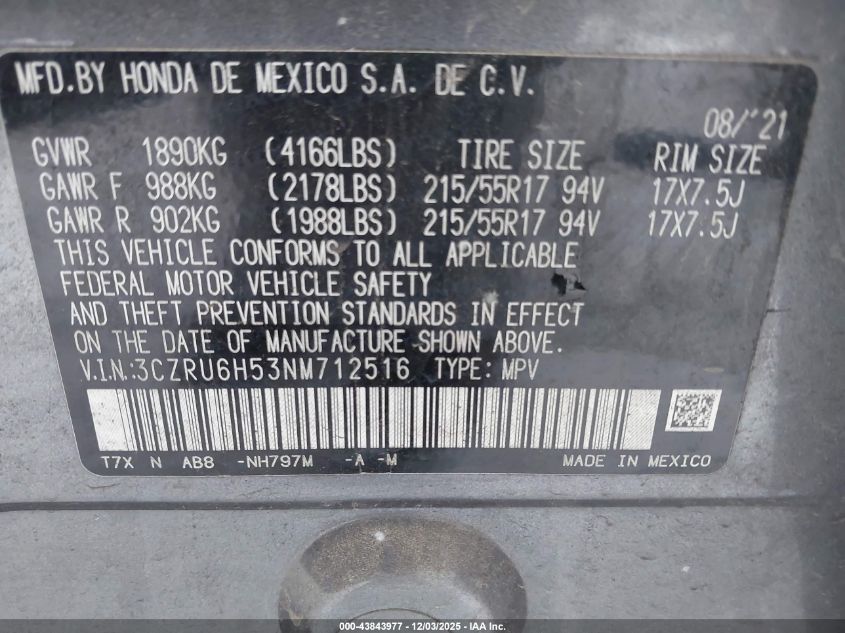 2022 HONDA HR-V 2022 року Бензин, 1.8, Полный привод, vin - 3CZRU6H53NM712516 из США