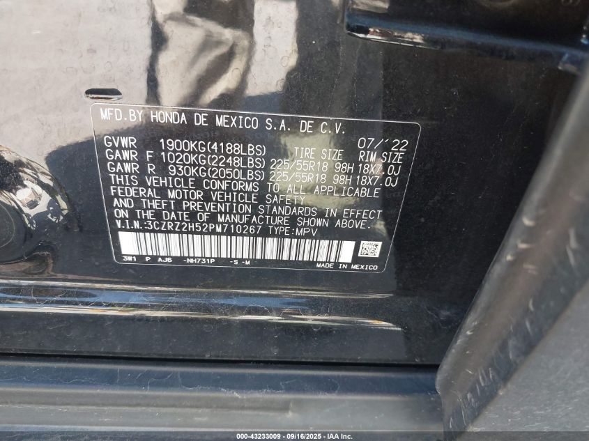 2023 HONDA HR-V 2023 року Бензин, 2.0, Полный привод, vin - 3CZRZ2H52PM710267 из США
