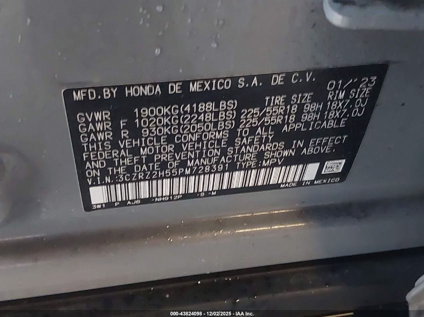 2023 HONDA HR-V 2023 року Бензин, 2.0, Полный привод, vin - 3CZRZ2H55PM728391 из США