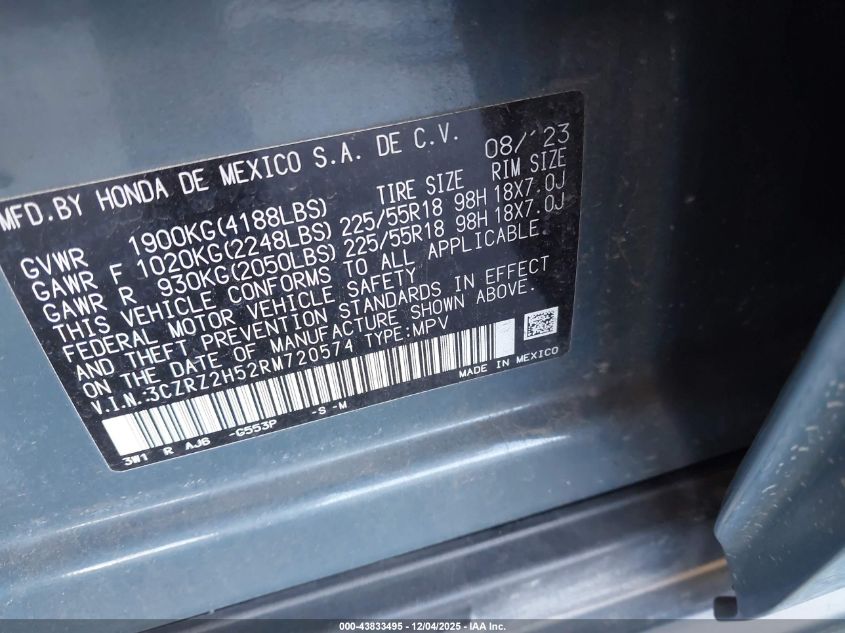 2024 HONDA HR-V 2024 року Бензин, 2.0, Полный привод, vin - 3CZRZ2H52RM720574 из США