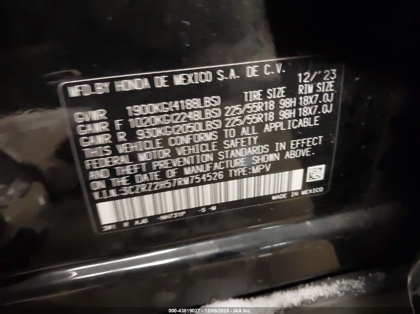 2024 HONDA HR-V 2024 року Бензин, 2.0, Полный привод, vin - 3CZRZ2H57RM754526 из США