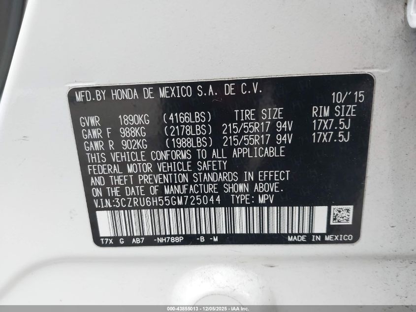 2016 HONDA HR-V 2016 року Бензин, 1.8, Полный привод, vin - 3CZRU6H55GM725044 из США