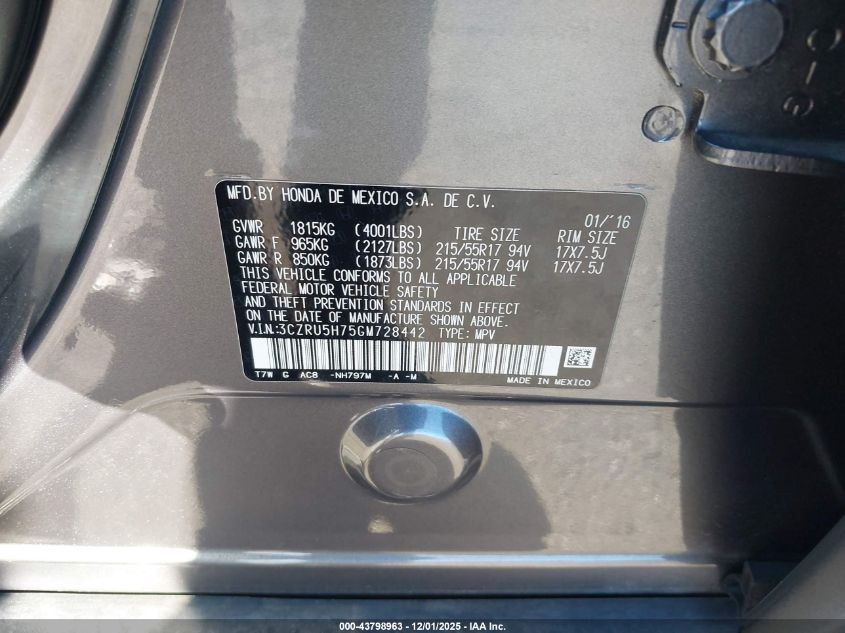 2016 HONDA HR-V 2016 року Бензин, 1.8, Передний привод, vin - 3CZRU5H75GM728442 из США