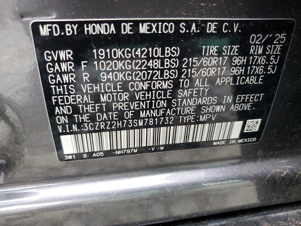 2025 HONDA HR-V 2025 року Бензин, 2.0, Полный привод, vin - 3CZRZ2H73SM781732 из США