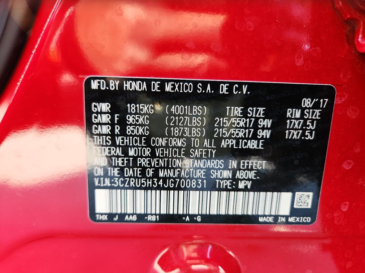 Цвет КрасныйЦилиндры 4VIN 3CZRU5H34JG700831Состояние НеизвестноПовреждения Передняя или задняяДата аукциона 2025-12-09 AutoRIA