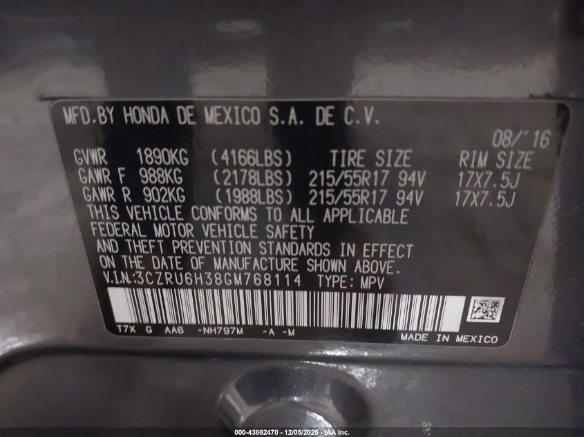2016 HONDA HR-V 2016 року Бензин, 1.8, Полный привод, vin - 3CZRU6H38GM768114 из США
